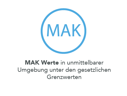 • MAK-Werte in den behandelten Räumlichkeiten bleiben signifikant unter Grenzwerten