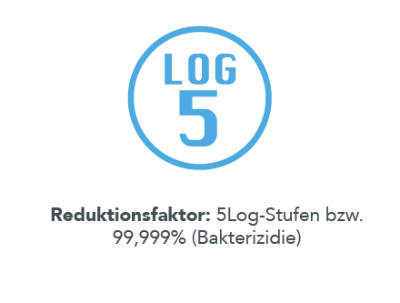 • Reduktionsfaktor: 5Log-Stufen bzw. 99,999% (Bakterizidie)